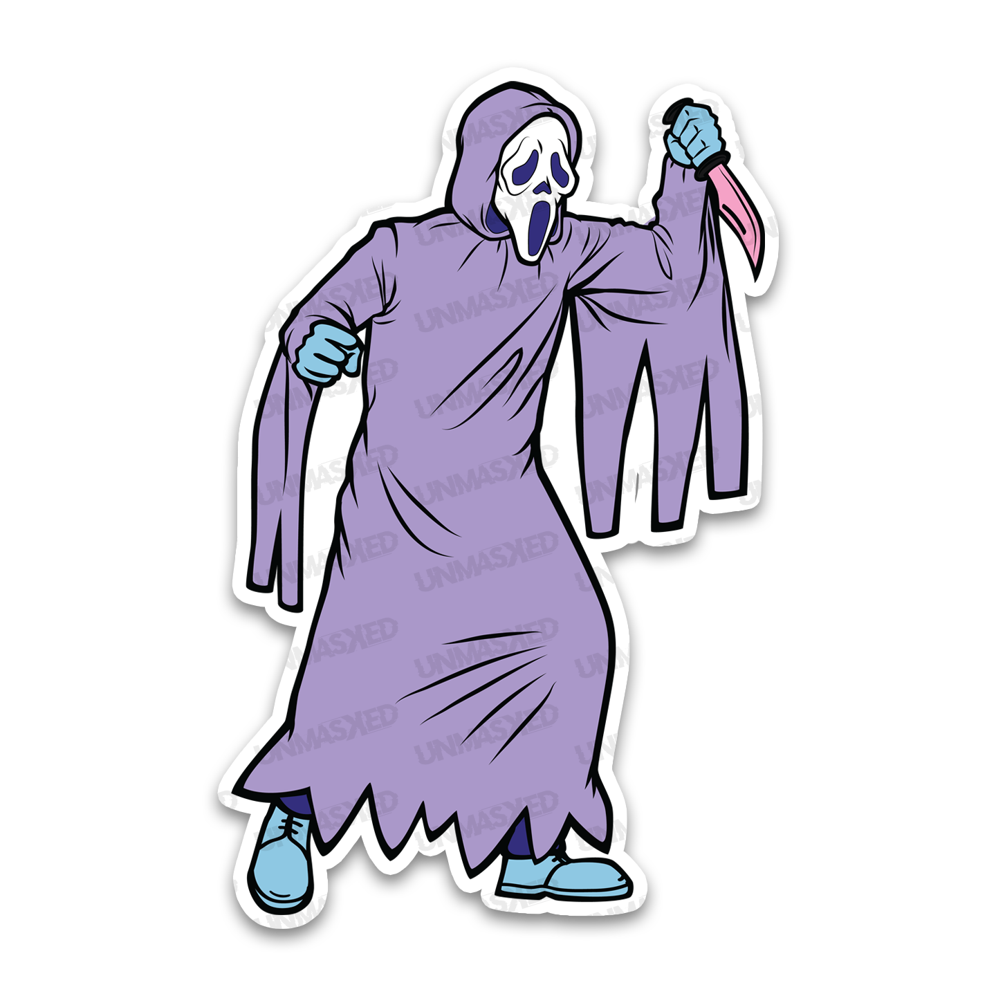 Our original and unique artwork featuring Ghostface from the classic horror movie Scream. Measuring approximately 1.97" x 3" and printed on thick, durable vinyl that protects your stickers from scratches, water & sunlight.