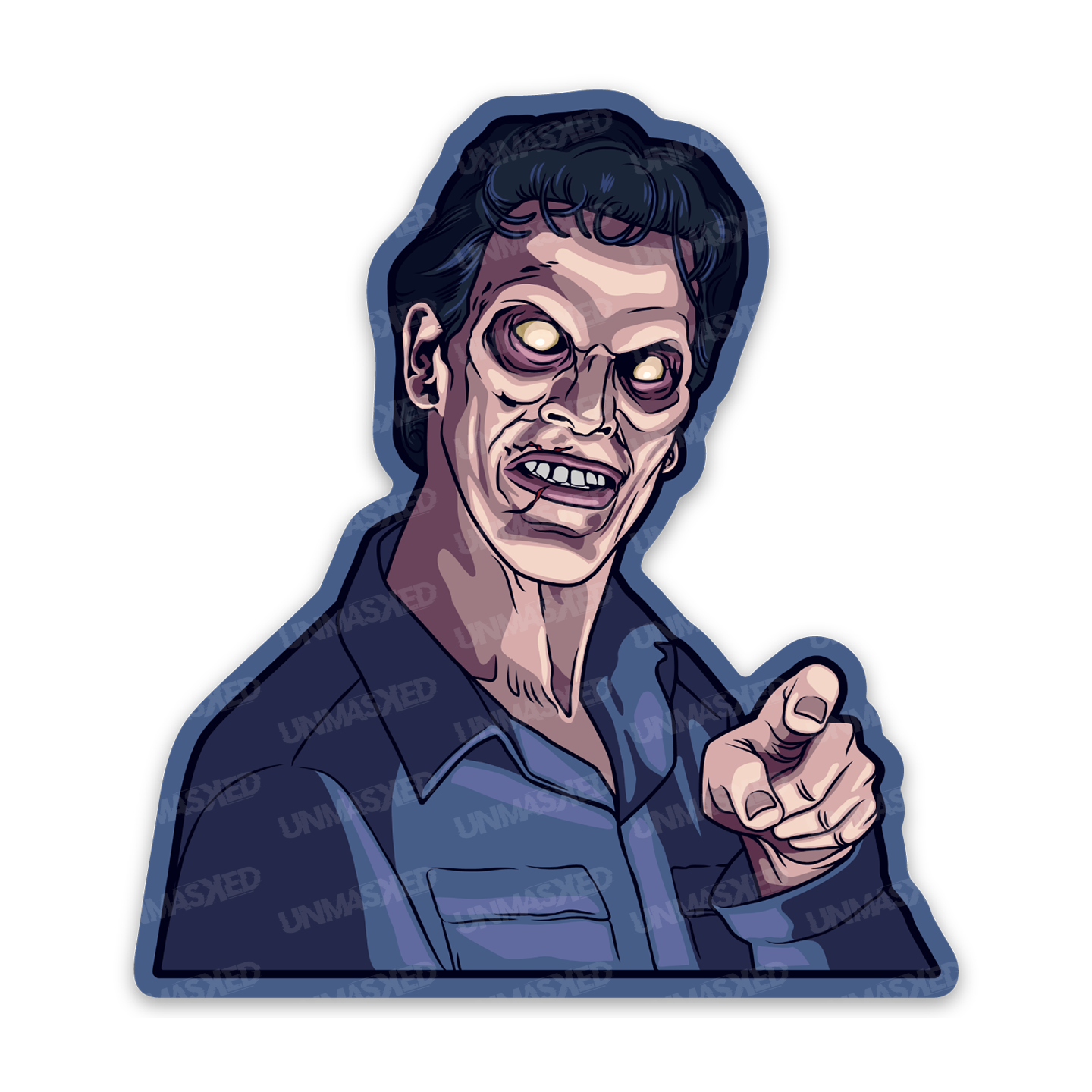 Our original and unique artwork featuring Ash Williams as a Deadite from the horror film Evil Dead. Measuring approximately 2.72" x 3" and printed on thick, durable vinyl that protects your stickers from scratches, water & sunlight.